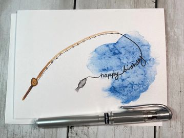 Birthday Day card featuring print of original watercolor painting perfect for the fisherman in your life. Blank inside for our personal sentiments.